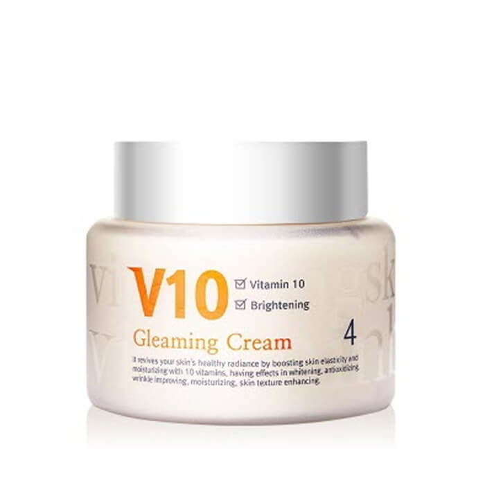 - Kem Dưỡng Trắng V10 Gleaming Hàn Quốc Giá Bao Nhiêu là giải pháp hoàn hảo dành cho làn da sẫm màu của bạn. Kem Dưỡng Trắng V10 Gleaming Hàn Quốc Giá Bao Nhiêu được đặc chế từ các dưỡng chất làm trắng da từ thiên nhiên, cùng kết hợp công nghệ được sản xuất theo công nghệ Liposome giúp dưỡng trắng từ sâu bên trong – Kem dưỡng trắng sáng da mặt cao cấp V10 Gleaming Cream Skinaz Hàn Quốc sẽ giúp bạn có được làn da trắng sáng, lán mịn và tự nhiên chỉ sau 1- 2 tuần sử dụng.