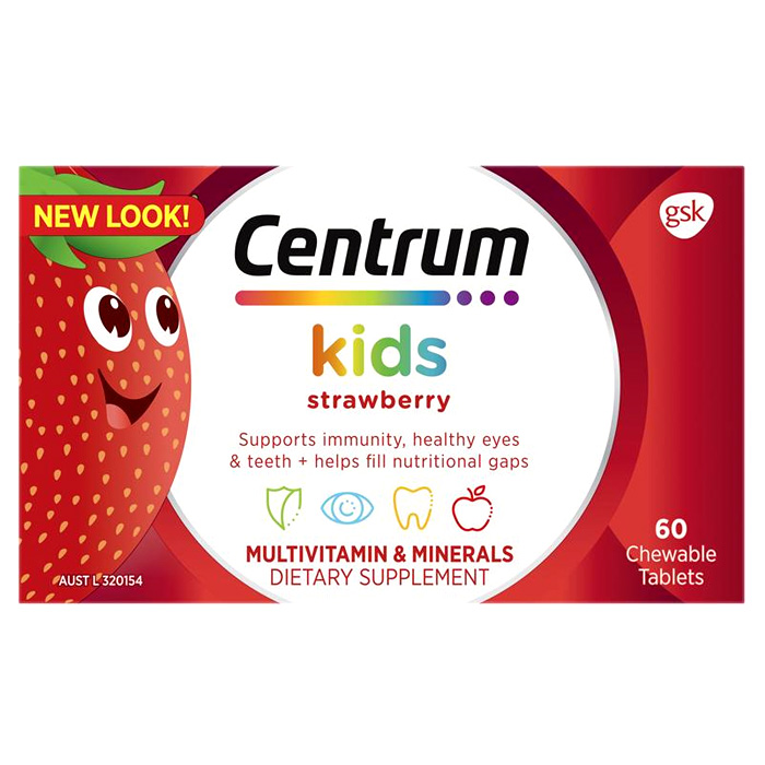 - Vitamin tổng hợp cho trẻ em Thuốc Bổ Centrum Của Úc Strawberry dạng viên nhai hương vị dâu ngon, bé nào cũng thích. Sản phẩm chứa 18 loại vitamin và khoáng chất thiết yếu, để tăng cường đề kháng, hỗ trợ răng chắc khỏe, bổ mắt, tăng năng lượng, cho bé hoạt động suốt cả ngày. Sản phẩm dành cho trẻ em tư 3 tuổi.
