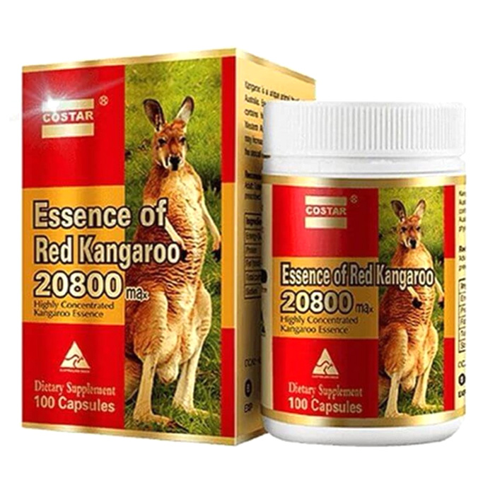 - Sản phẩm sản xuất trên công nghệ hiện đại, giúp lượng dưỡng chất được toàn vẹn, với hàm lượng cao để mang hiệu quả tích cực. Essence of Red Kangaroo 20800 Max là sản phẩm của hãng dược phẩm Costar uy tín tại Úc, đã được tin dùng trên thị trường quốc tế trong suốt nhiều năm qua.