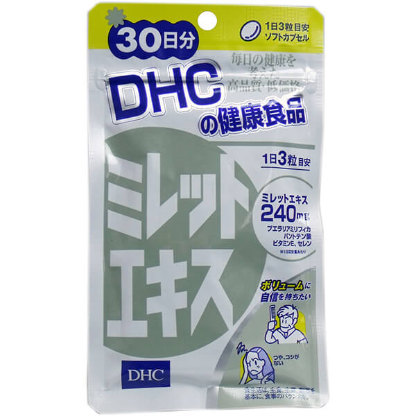- Chiết xuất hạt kê (Panicum miliaceum L.) trong Thuốc Uống Mọc Tóc Dhc Của Nhật của Nhật Bản có chứa nhiều loại dưỡng chất khác nhau (acid béo, protein.amino acid, khoáng chất). Triterpenoid miliacin có trong chiết xuất hạt kê được xác định là một trong những hoạt chất chính. Sự kết hợp giữa chiết xuất hạt kê với vitamin B1, B2, B5, B6 giúp tóc tăng trưởng ở mức cao.