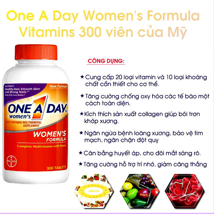 Vì vậy, One A Day Women’s Multivitamin 300 viên dành cho nữ dưới 50 tuổi hiện đang được đánh giá là sản phẩm hiệu quả nhất hiện nay. Để tìm hiểu rõ sản phẩm này có thực sự cung cấp lượng vitamin cho cơ thể không, mời bạn hãy cùng khám phá nhé.