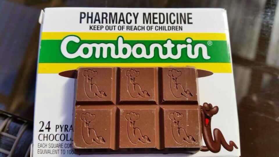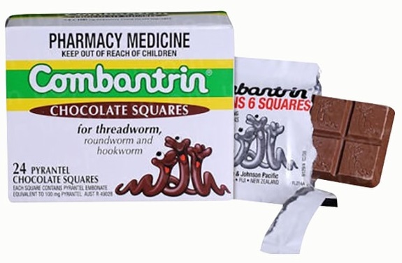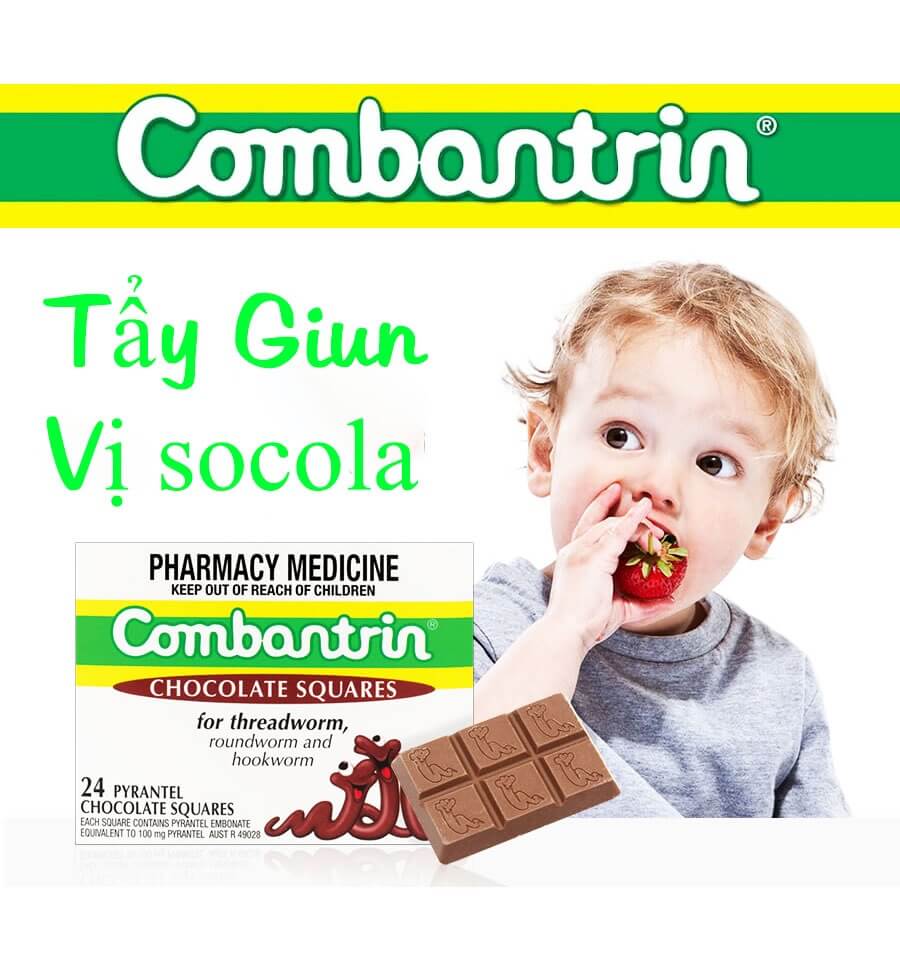 Thuốc tẩy giun Combantrin Chocolate Squares là sản phẩm của thương hiệu Combantrin của Úc cực kì nổi tiếng chuyên về các sản phẩm tẩy giun cho người lớn và trẻ em. Kẹo tẩy giun Combantrin Chocolate Square với cơ chế làm tê liệt giun, khiến giun không thể di chuyển rồi đẩy ra ngoài cùng chất thải, hiệu quả chi sau 1 liều.