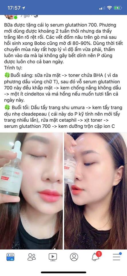 Dưới là một vài phản hồi từ khách hàng về Huyết Thanh Trắng Da 7Day Glutathione 700: