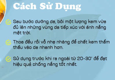 - Thoa đều lên các vùng da và vùng mặt cần được bảo vệ, vỗ nhẹ để sản phẩm thẩm thấu hiệu quả.