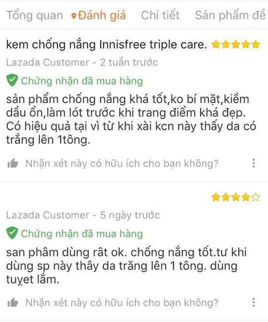 Sau đây là một vài đánh giá về kem chống nắng Innisfree Long Lasting: