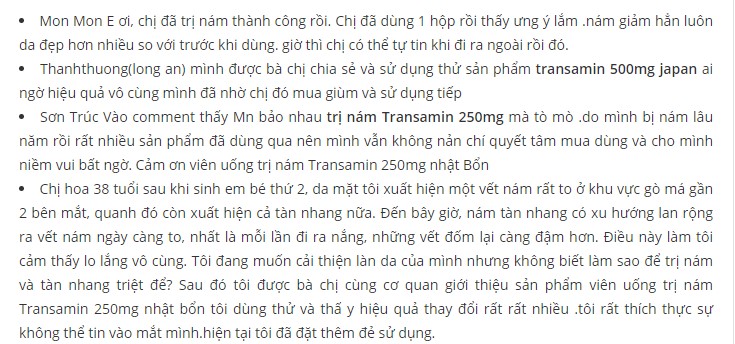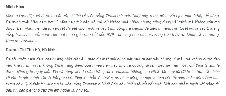 REVIEW VỀ TRANSAMIN TRỊ NÁM 500MG CỦA NHẬT
