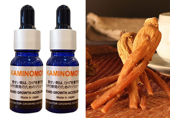 Hồng Sâm Nhật Bản: chứa hàm lượng cao Saponin tăng lưu thông máu đưa các dưỡng chất đến râu phục hồi và nuôi dưỡng giúp râu chắc khỏe, kích thích râu mọc dài ra. Saponin còn có công dụng giúp gia tăng testosterone trong máu giúp râu và da chống được sự lão hóa, râu mọc dày hơn, rậm và đều hơn.